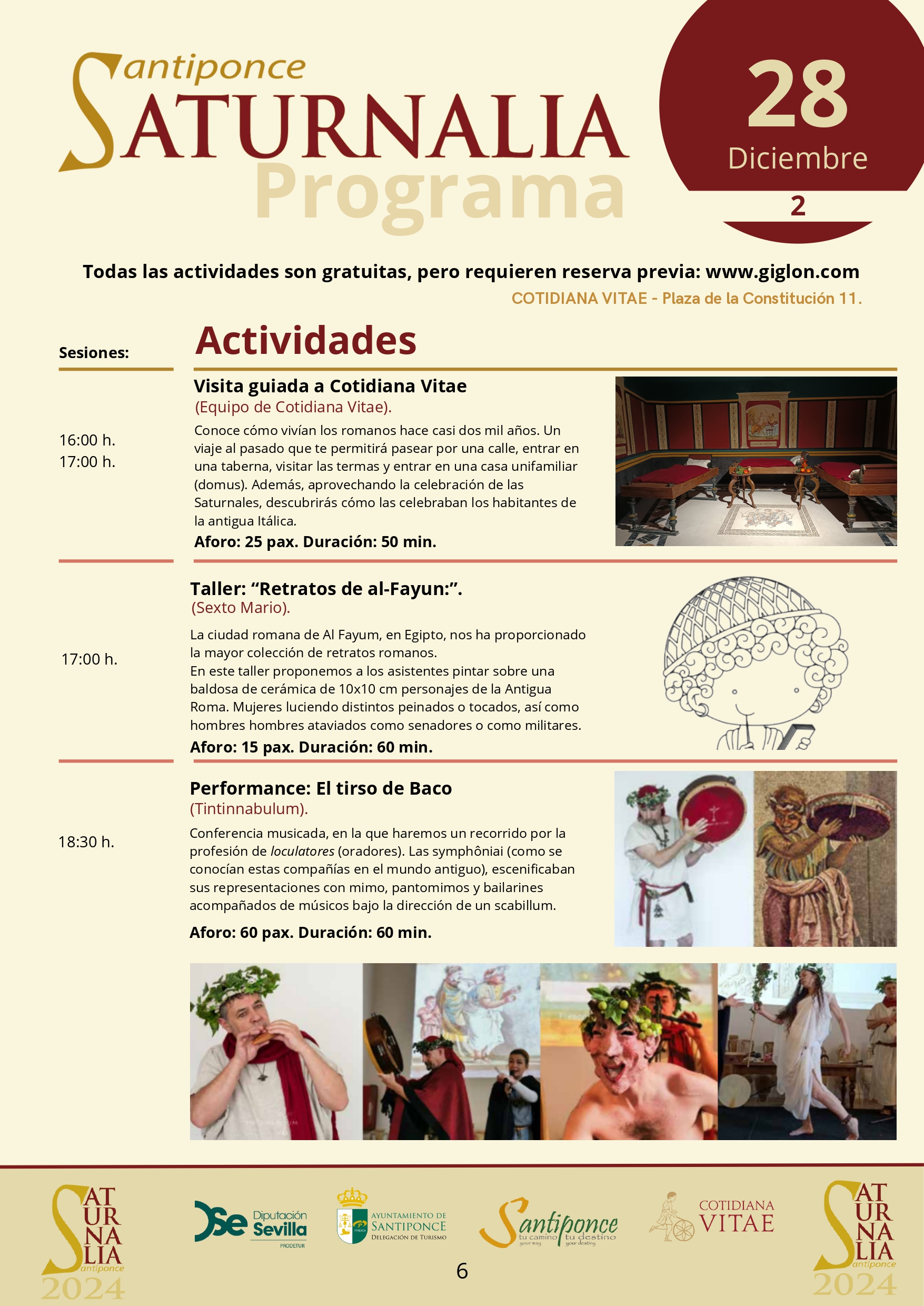 Te invitamos a vivir una experiencia única que te conectará con las raíces de Saturnalia a través de actividades culturales, representaciones y talleres diseñados para toda la familia.