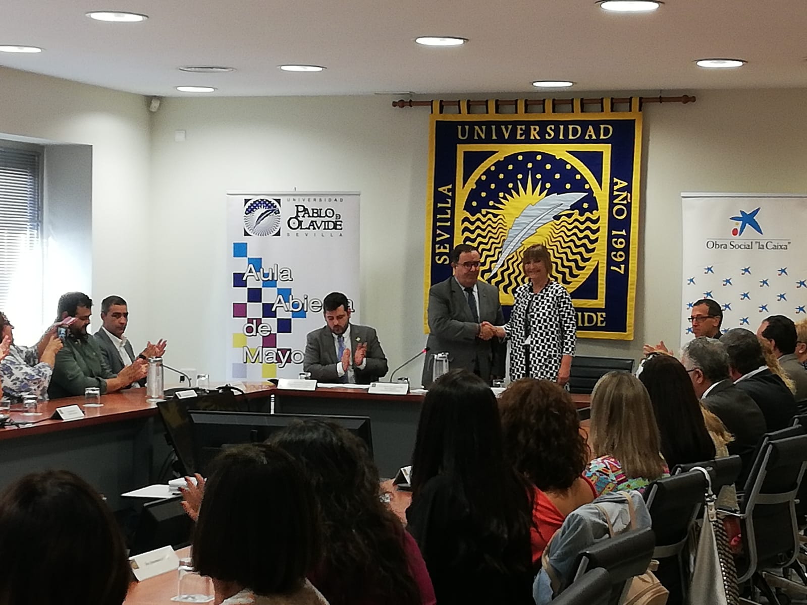 Ayer jueves 10 de octubre se celebró en la Universidad Pablo de Olavide un encuentro institucional que ha reunido a los alcaldes, alcaldesas y concejales de las localidades adscritas al programa Aula Abierta de Mayores de la UPO, así como a representantes de la Diputación de Sevilla y Obra Social “La Caixa”, instituciones que colaboran con este programa de intervención socioeducativa.