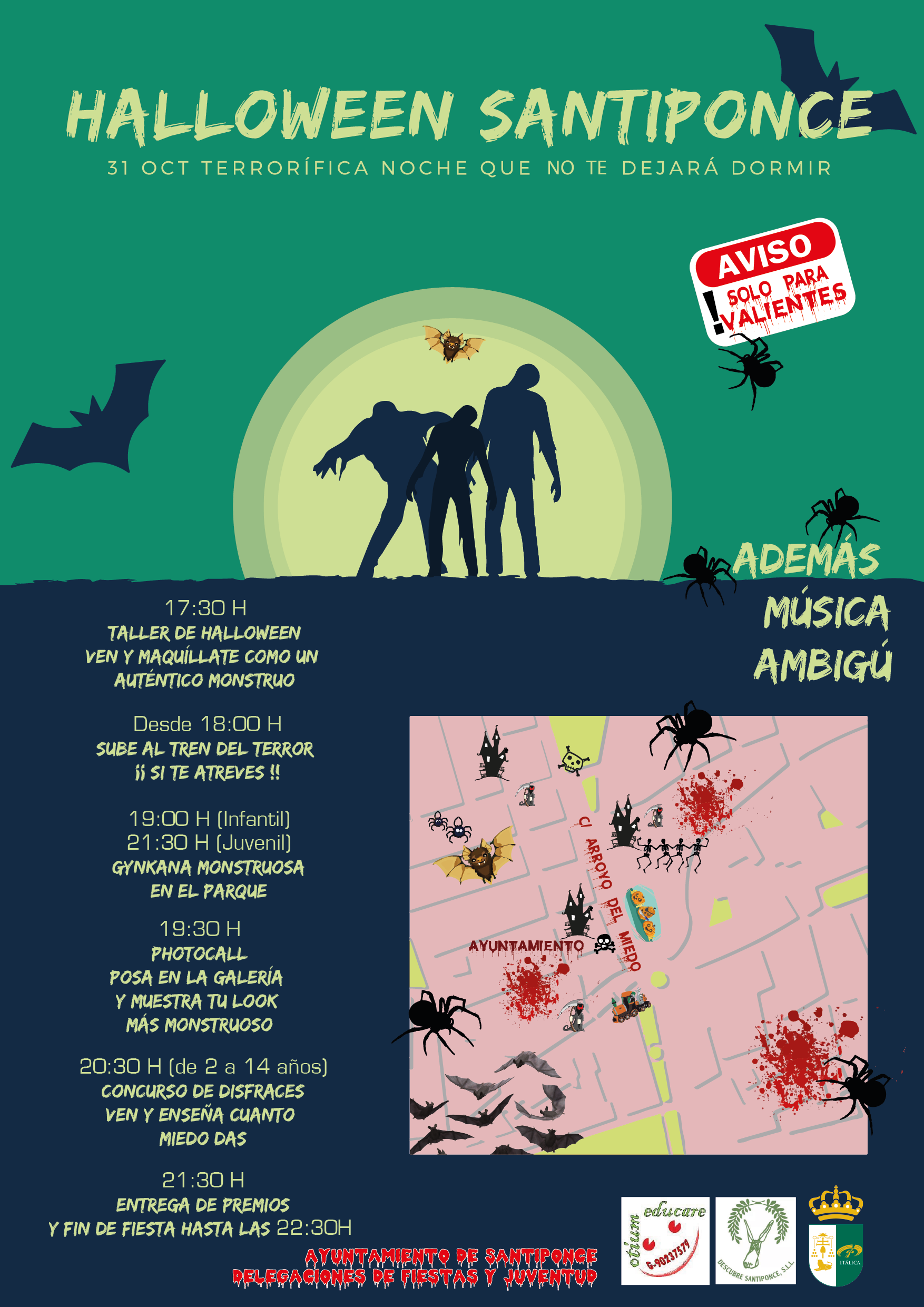 Empezaremos a las 17:50h y terminaremos sobre las 22:30h. Será una tarde plagada de actividades: maquillaje terrorífico, tren del terror, gymkana monstruosa, photocall, concurso de disfraces, fiesta, música………