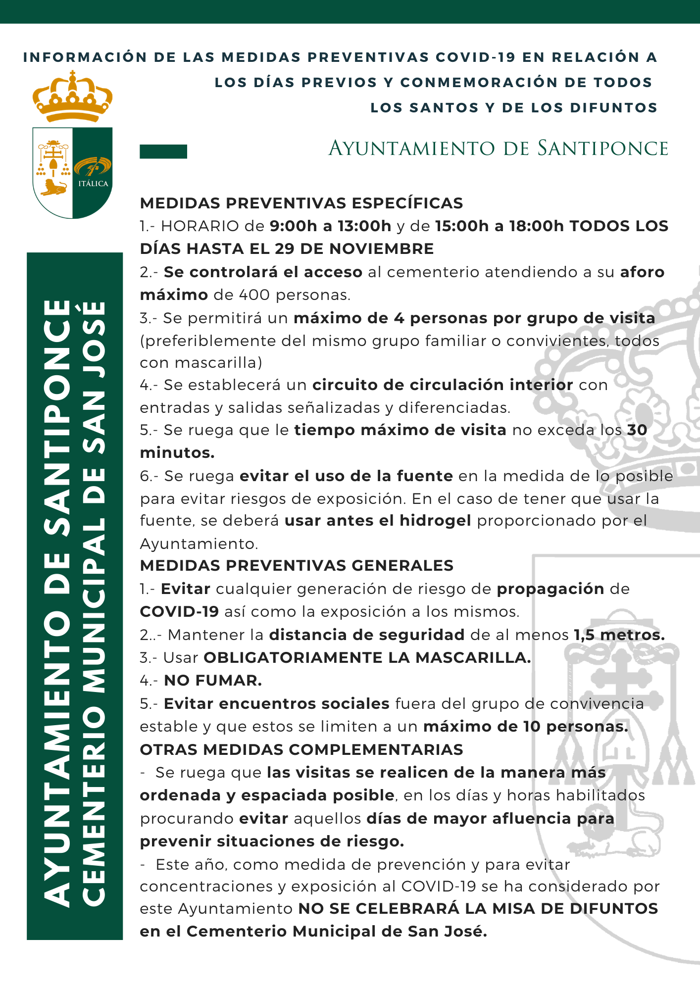 INFORMACIÓN DE LAS MEDIDAS PREVENTIVAS COVID-19 EN RELACIÓN A LOS DÍAS PREVIOS Y CONMEMORACIÓN DE TODOS LOS SANTOS Y DE LOS DIFUNTOS