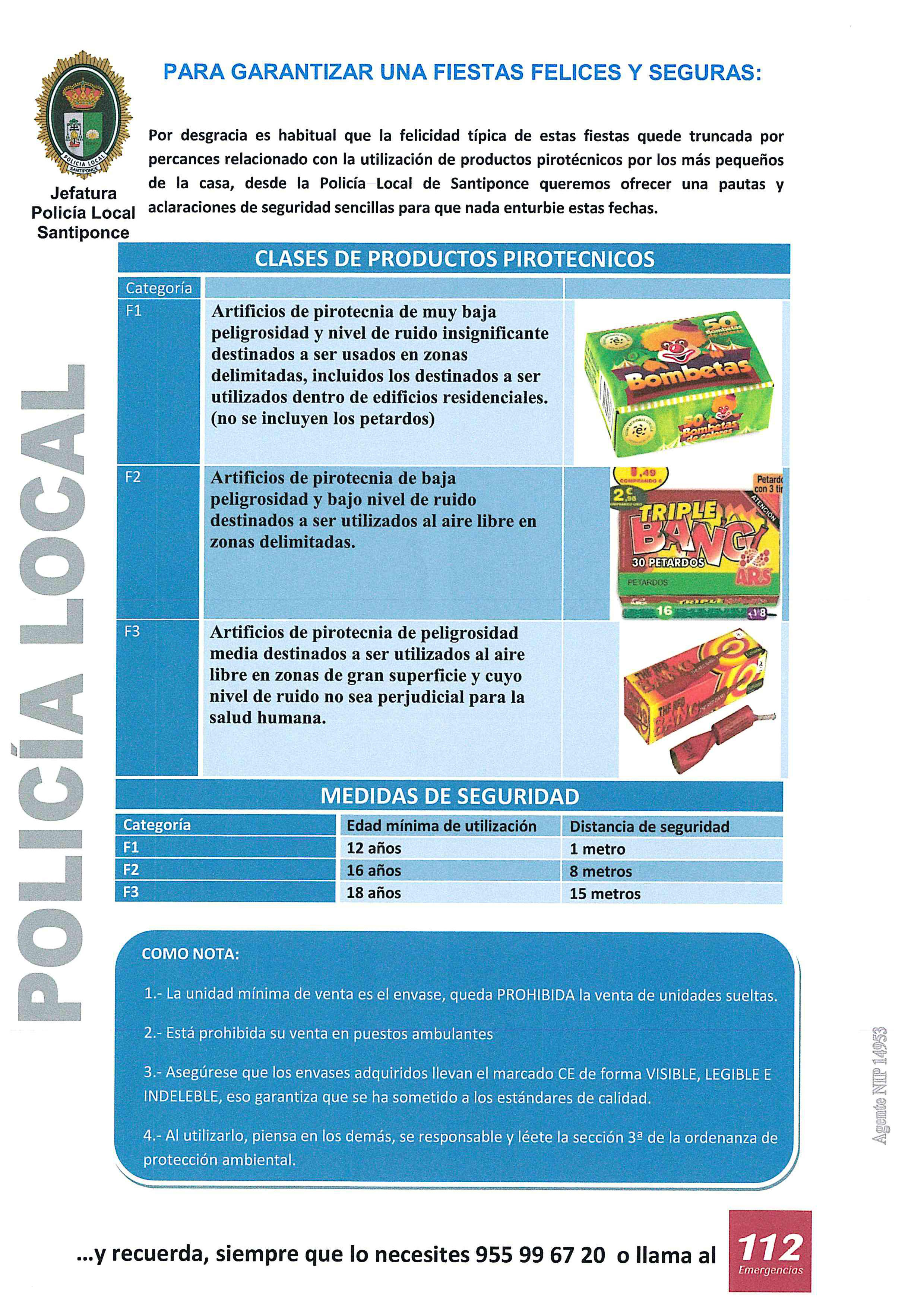 Por desgracia es habitual que la felicidad típica de estas fiestas quede truncada por percances relacionado con la utilización de productos pirotécnicos por los más pequeños de la casa, desde la Policía Local de Santiponce queremos ofrecer una pautas y aclaraciones de seguridad sencillas para que nada enturbie estas fechas.