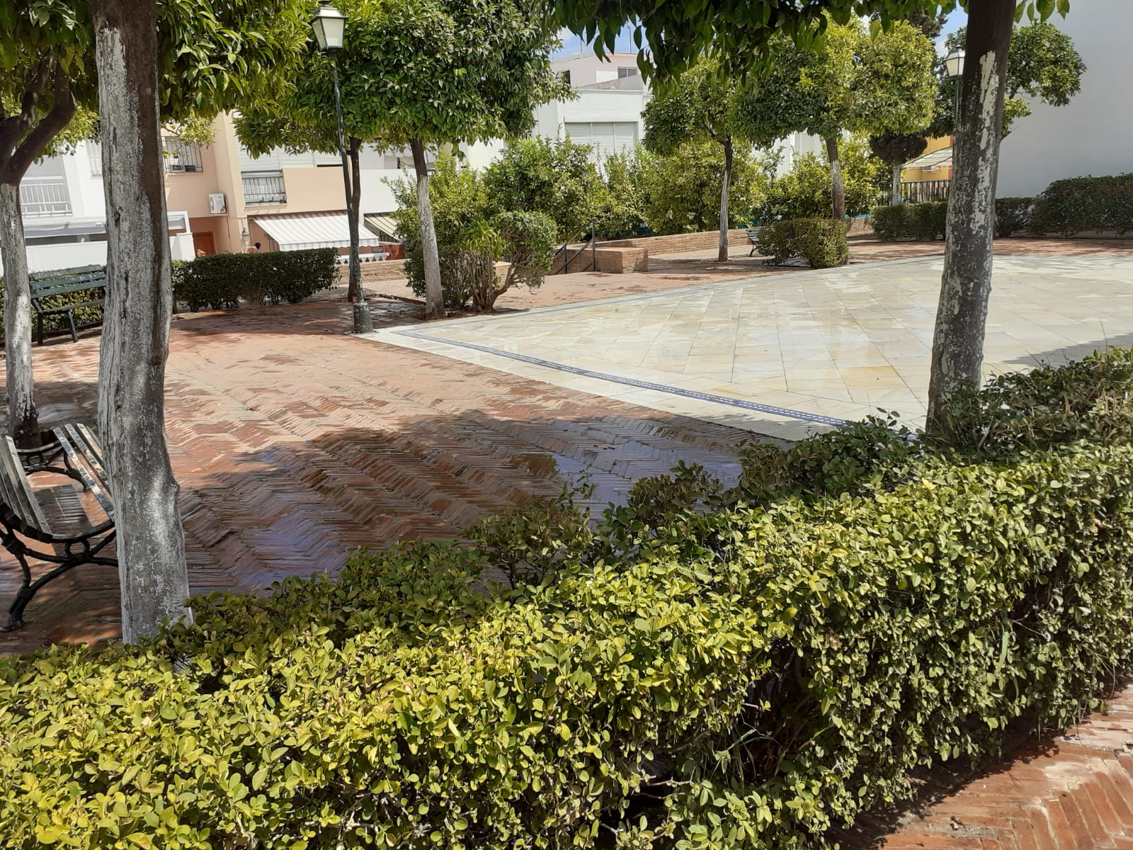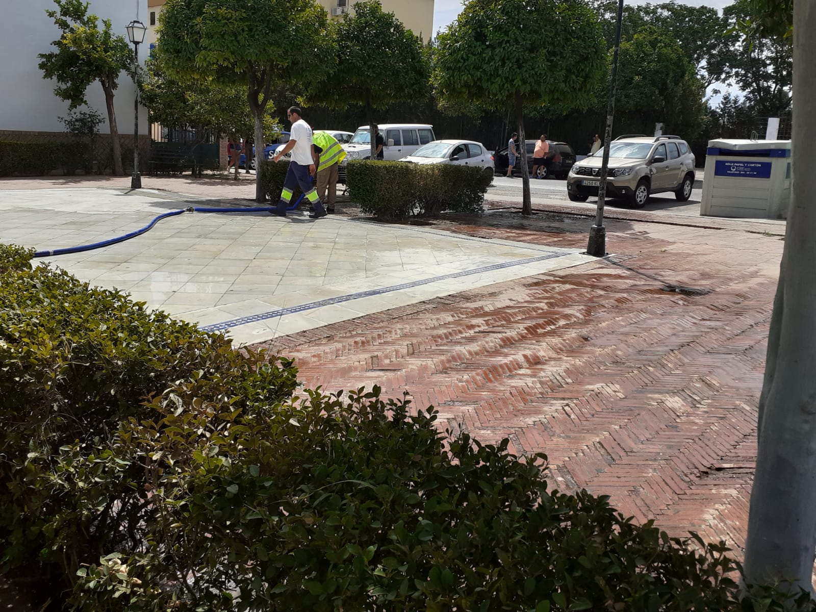 Hoy se han realizado trabajos de limpieza y baldeo de la Plaza de Itálica y de la Plaza 1 de Mayo, siguiendo con las tareas de adecentamiento y limpieza que estamos realizando en nuestro municipio.