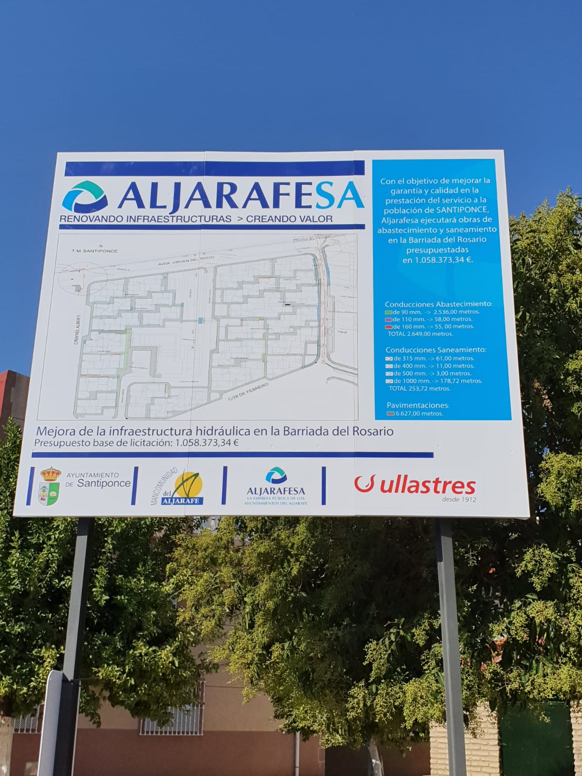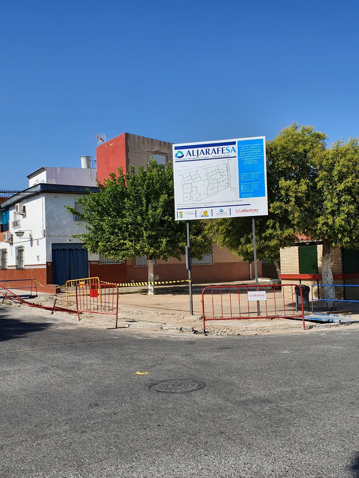 Con el objetivo de mejorar la garantía y calidad en la prestación del servicio a los vecinos y vecinas de la Barriada del Rosario y de la Calle Pablo Neruda, continúan a buen ritmo las obras de abastecimiento y saneamiento presupuestada en 1.058.373,34€ que Aljarafesa está ejecutando en nuestro municipio.