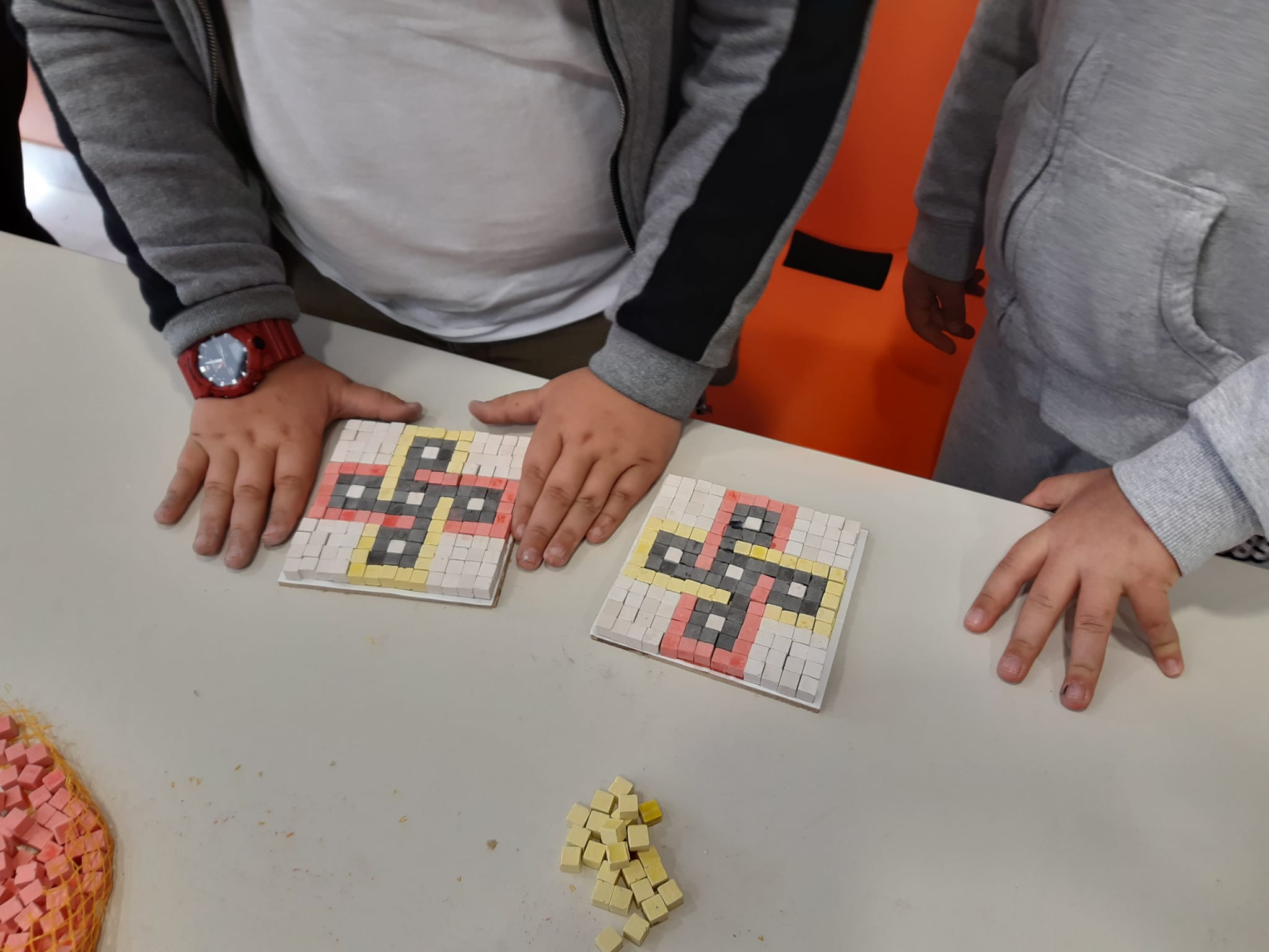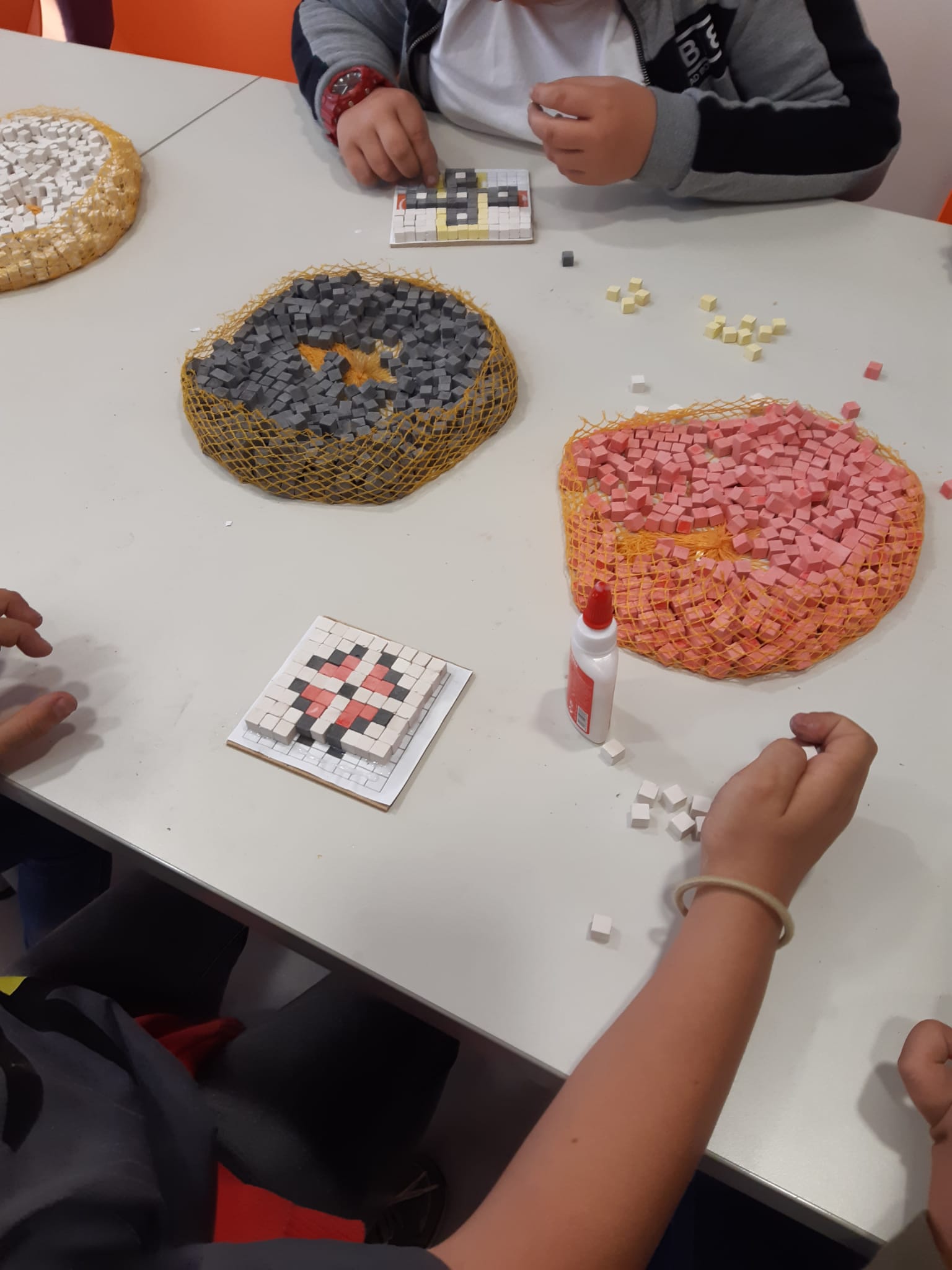 Un mosaico en su origen es una obra compuesta de piedrecillas, terracota o vidrios de varios colores. También empleaban materiales como mármol, vidrio, ónice, etc. Los romanos construían los mosaicos con pequeñas piezas cúbicas llamadas teselas. La palabra tesela viene del latín tessellae, que a su vez viene del griego y que significa, cuatro. Las teselas se elaboraban con sumo cuidado y en diferentes tamaños y colores y aglomeradas con cemento.