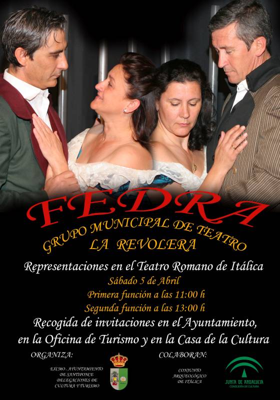 Las Delegaciones de Cultura y Turismo del Ayuntamiento de Santiponce organizan, dentro de la programación de la Feria Saturnalia 08, la representación por el grupo Municipal de Teatro "La Revolera" de la obra Fedra.