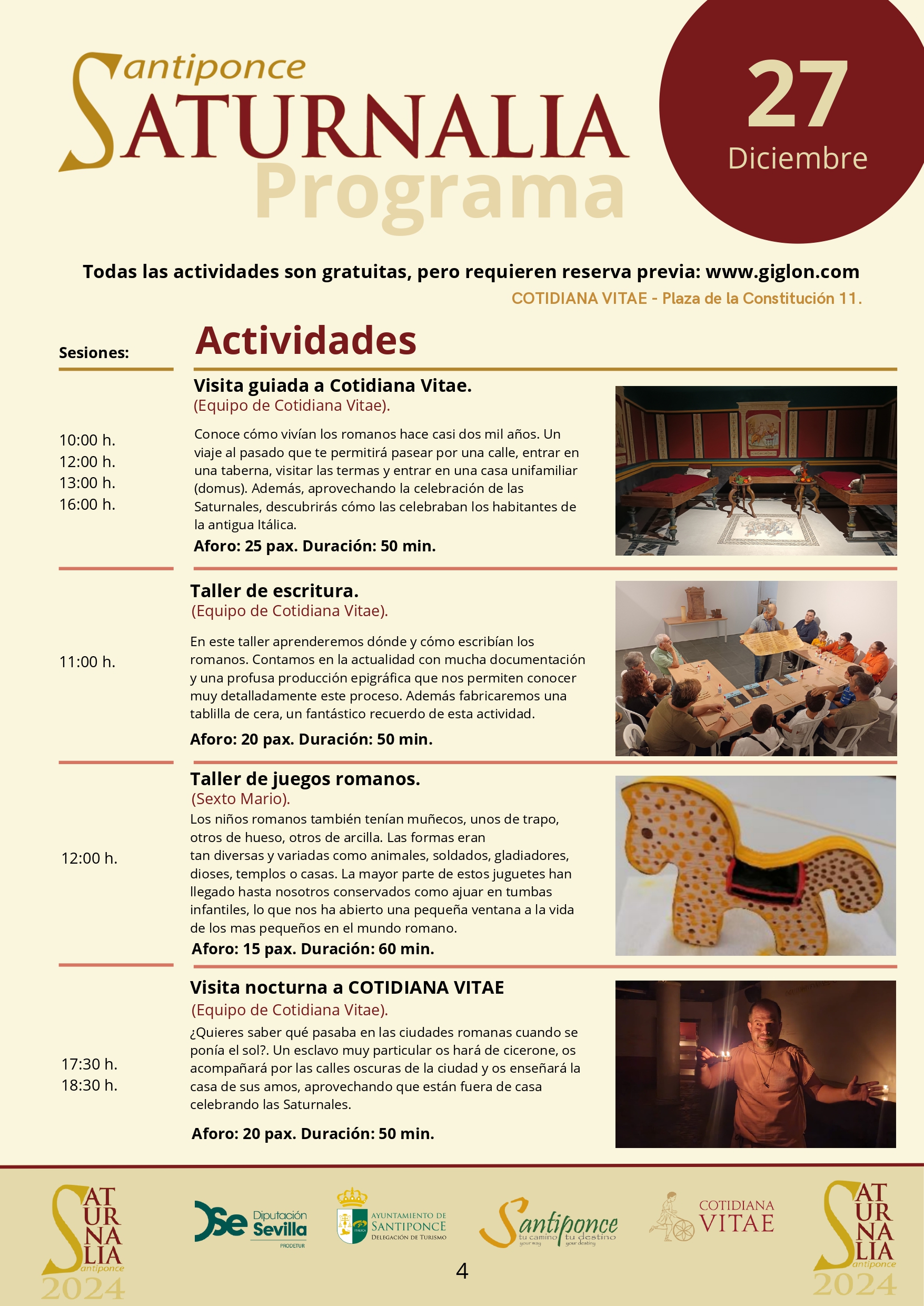 Te invitamos a vivir una experiencia única que te conectará con las raíces de Saturnalia a través de actividades culturales, representaciones y talleres diseñados para toda la familia.