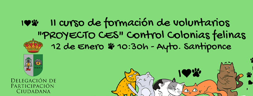El domingo 12 de enero celebraremos el II curso de formación de voluntarios "PROYECTO CES" de Control Colonias felinas.
