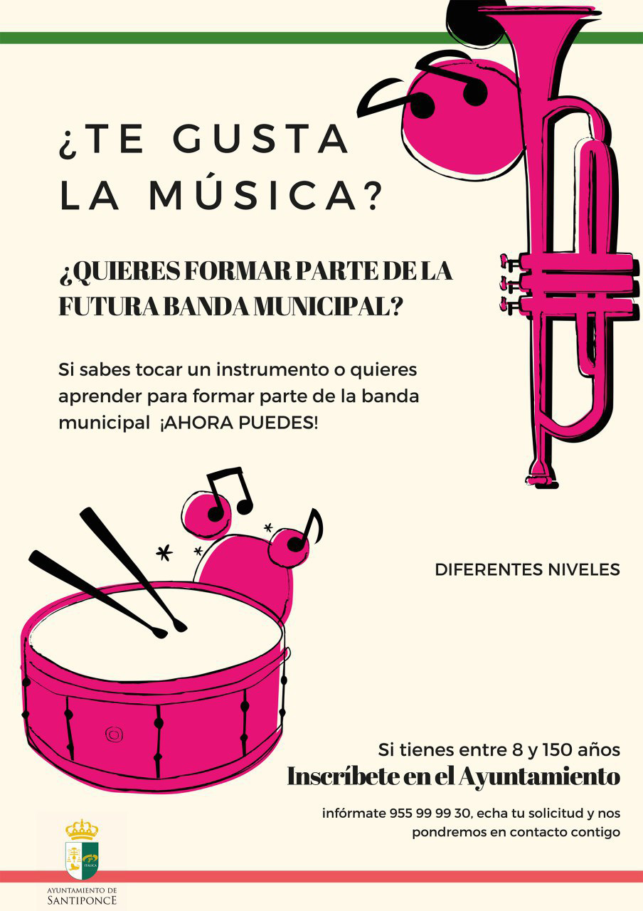 Si sabes tocar un instrumento o quieres aprender para formar parte de la banda municipal, ¡Ahora puedes!