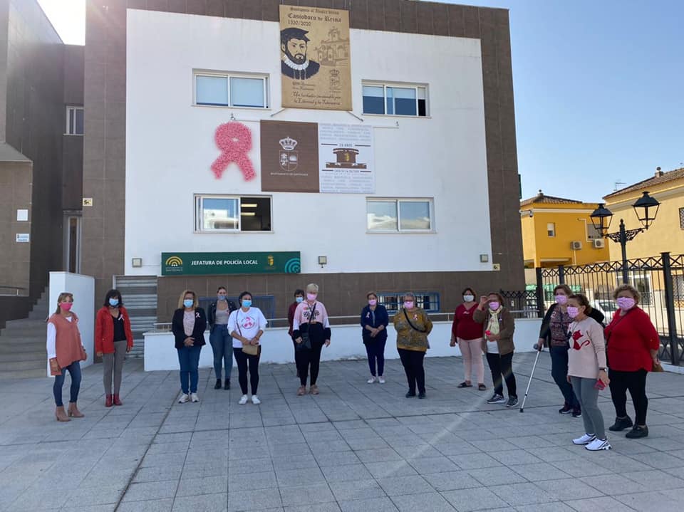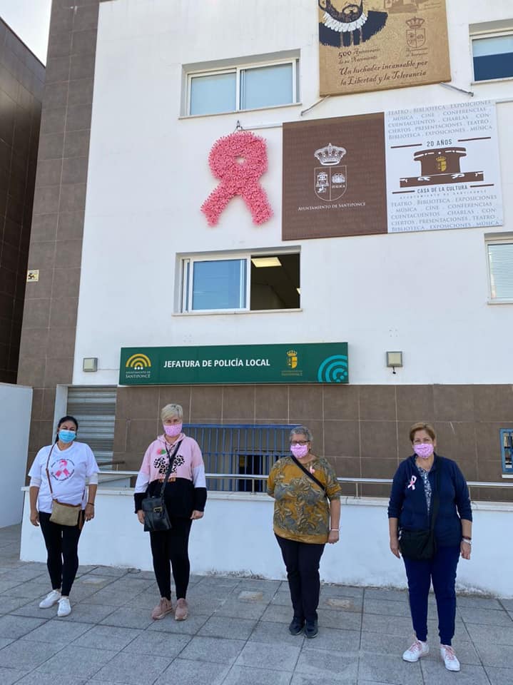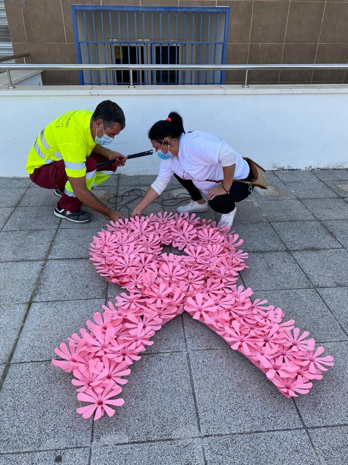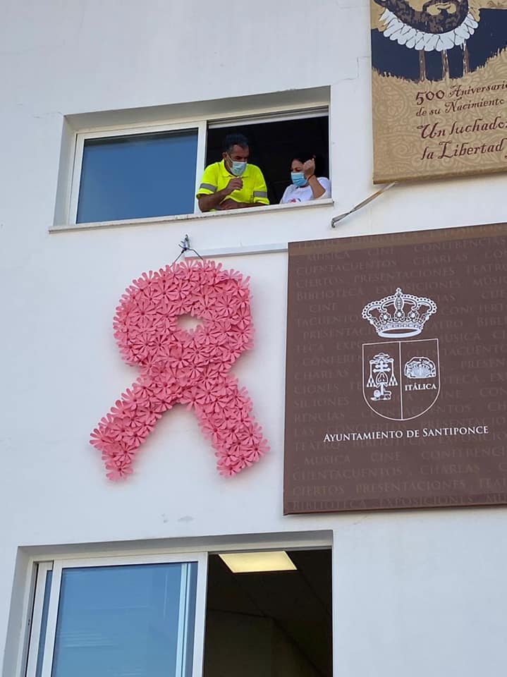 Esta mañana, al mediodía, se ha procedido a la colocación, en la fachada del Ayuntamiento, de un lazo rosa para concienciar y sensibilizar sobre el Cáncer de Mama, al celebrarse hoy su Día Internacional.