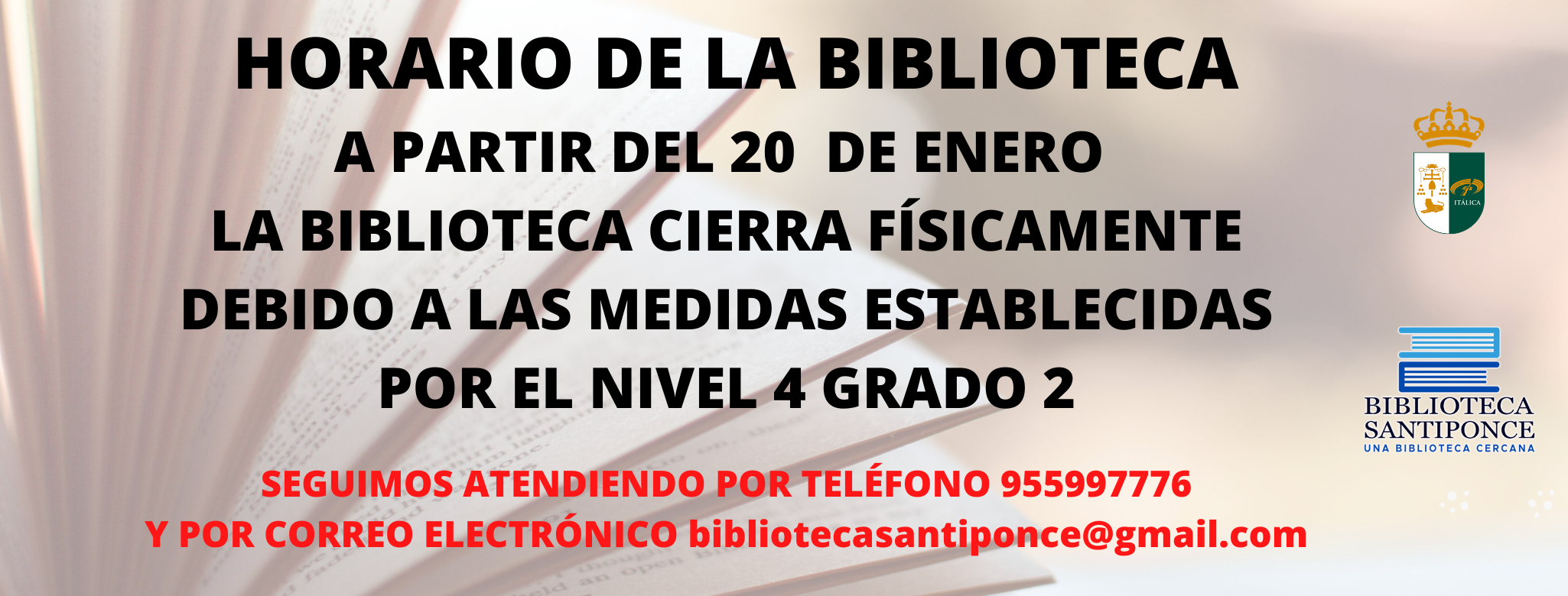 Así que si eres usuario de la Red de la Biblioteca de Andalucía y vives en Santiponce, tienes dos maneras de contactar con nosotros, por teléfono 955997776 (Biblioteca) de 9:00 a 14:00 horas y por correo electrónico bibliotecasantiponce@gmail.com.