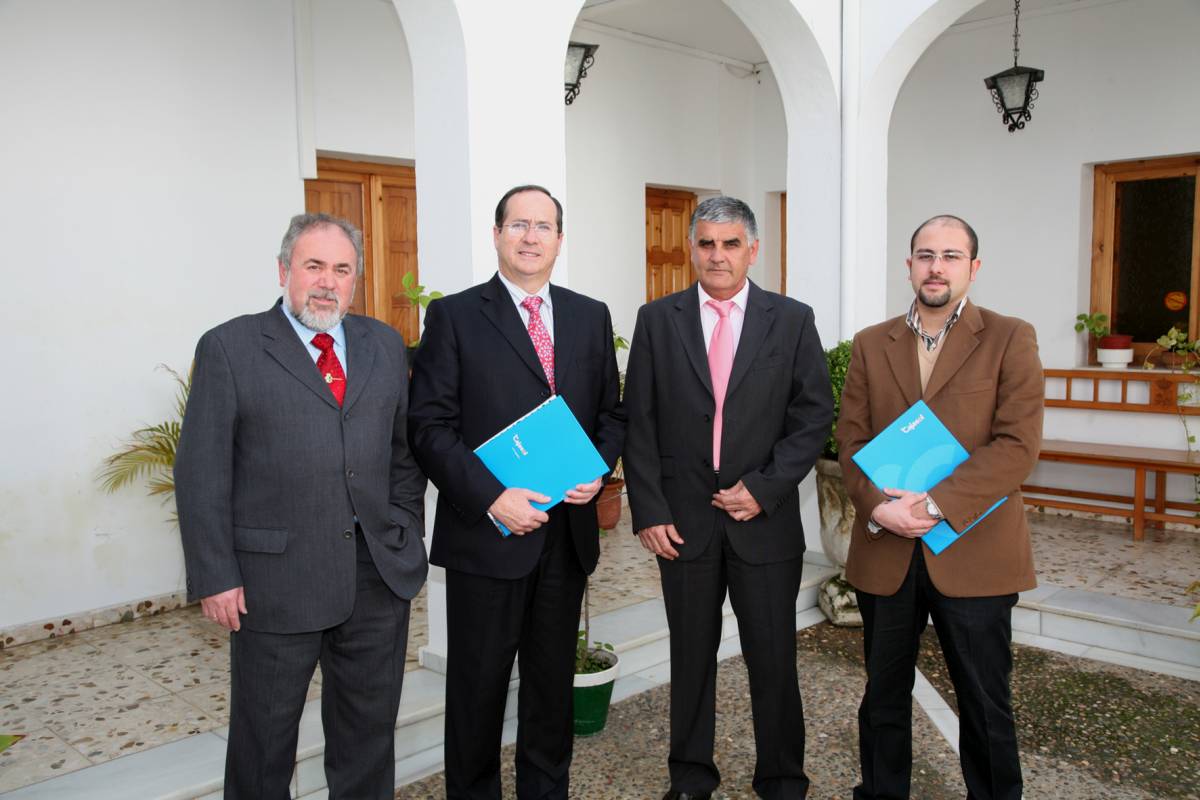 En foto: Juan José López, Concejal Delegado de Cultura - Emilio Aragón, Director de Área Cajasol Obra Social - José Peña, Alcalde de Santiponce - Carlos Gutierrez, Director sucursal Cajasol Santiponce