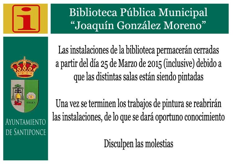 Aviso Biblioteca Pública Municipal "Joaquín González Moreno"
