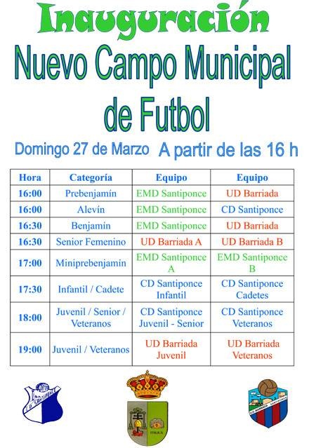 Con una gran expectación y muchos pequeños deseando pisar el césped del nuevo campo, por fin se inauguró en la tarde del 27 de marzo el Nuevo Campo de Futbol de césped artificial de Santiponce.