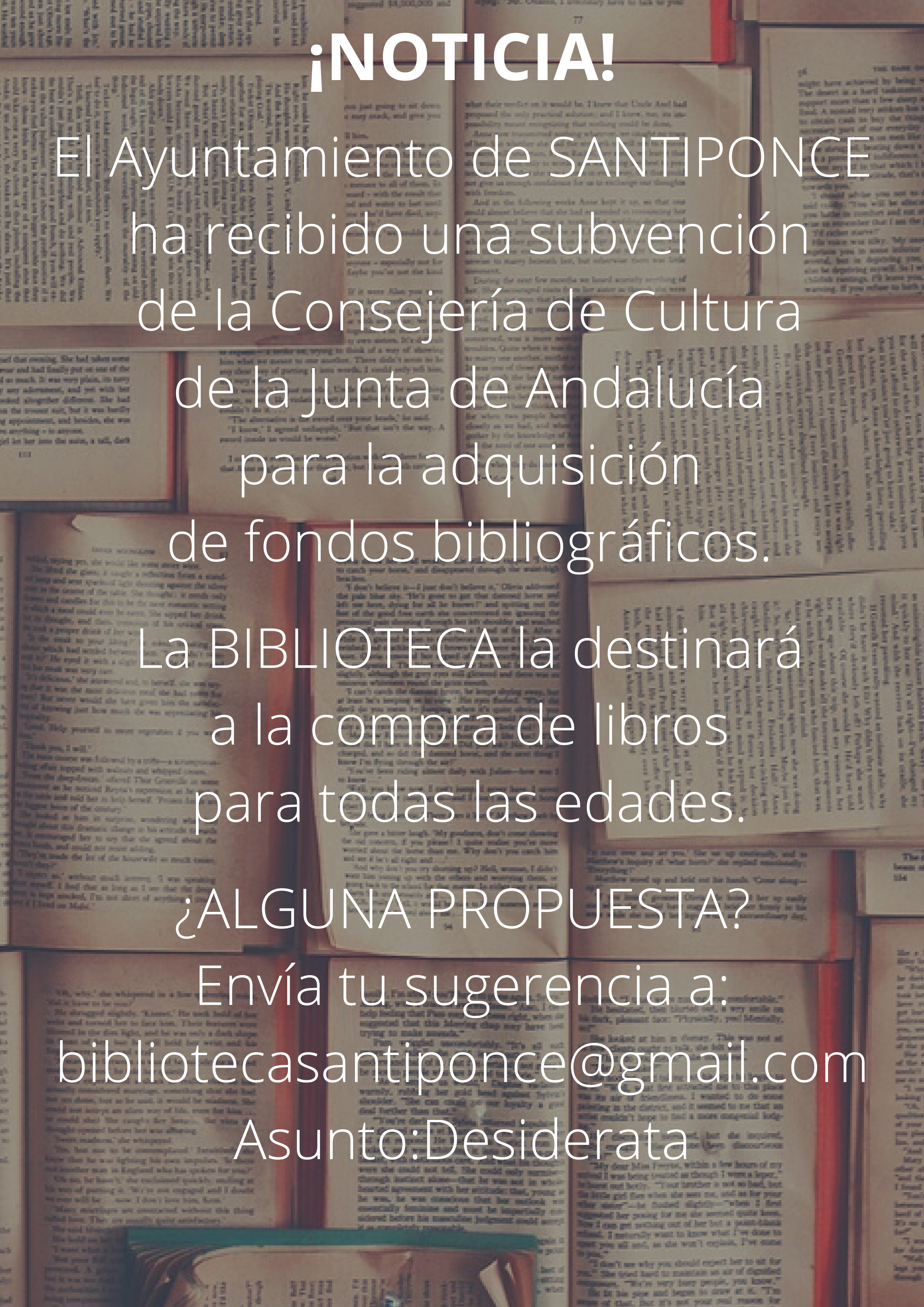 Envía tu sugerencia a: bibliotecasantiponce@gmail.com con el asunto: Desiderata