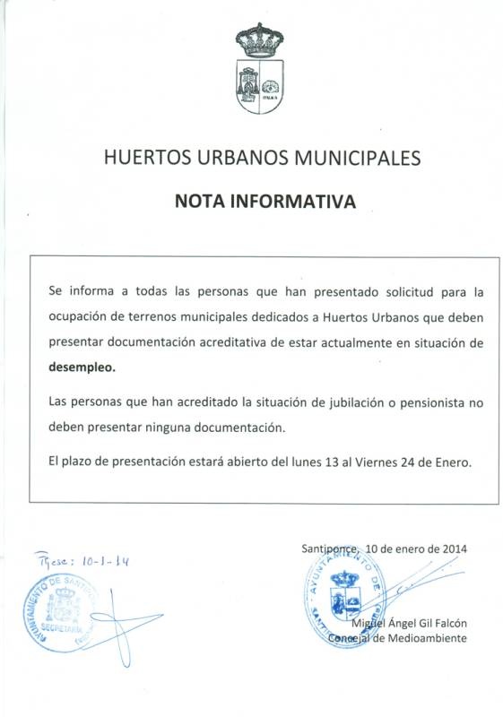 Nota Informativa Huertos Urbanos