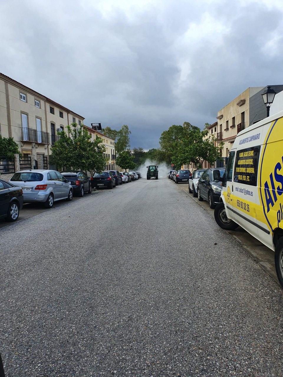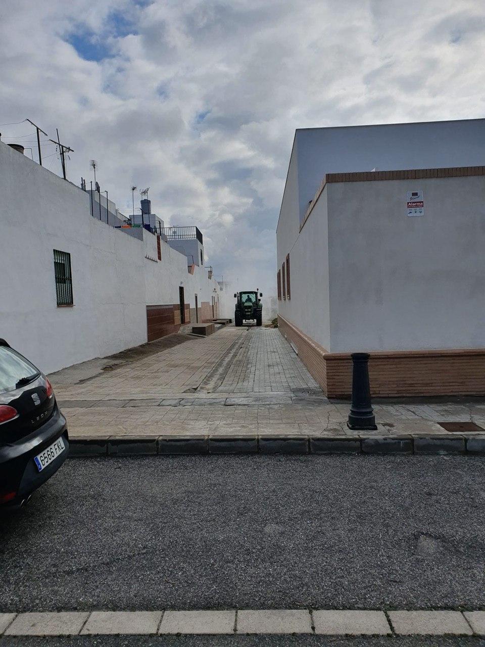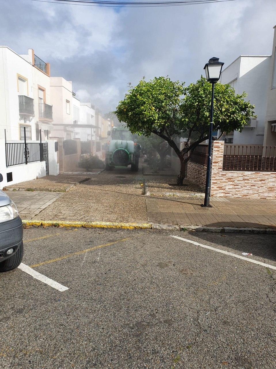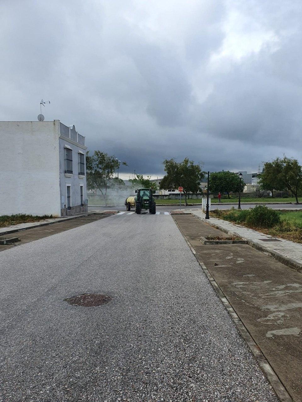 El Ayuntamiento de Santiponce, continuará con medios propios, las labores de desinfección por las zonas donde las dimensiones de la calle han impedido que los equipos pudiesen entrar y reforzando el trabajo de hoy.