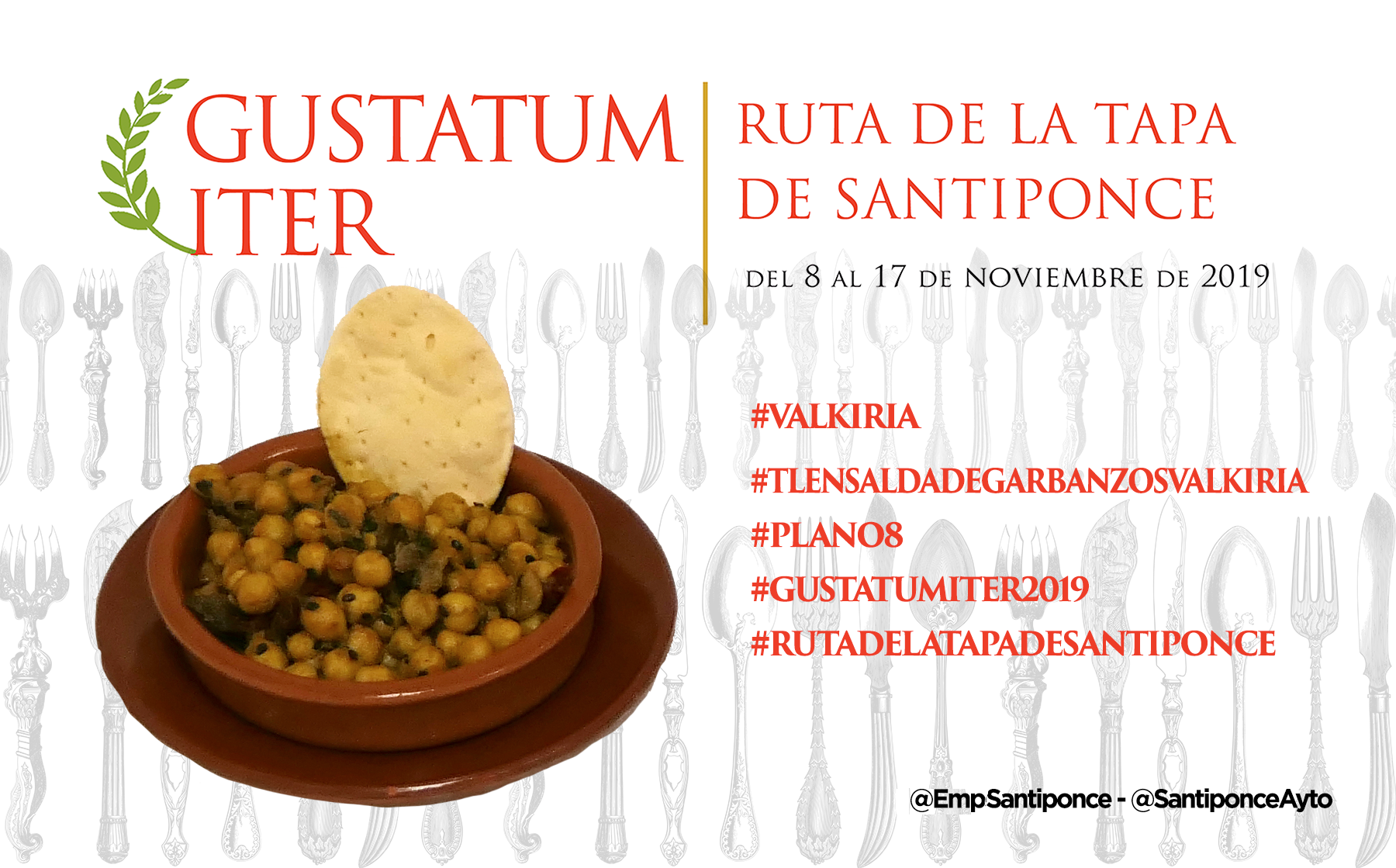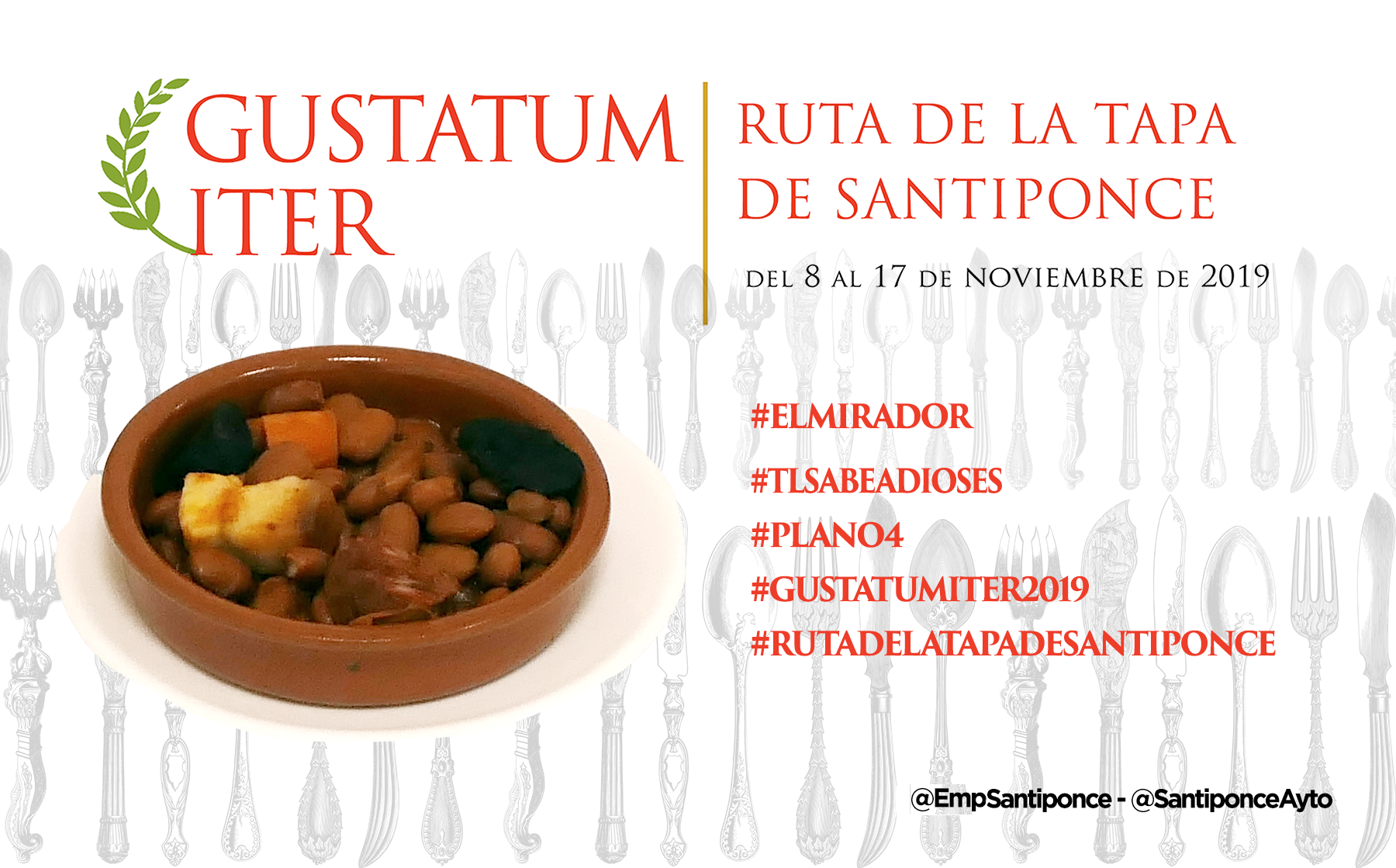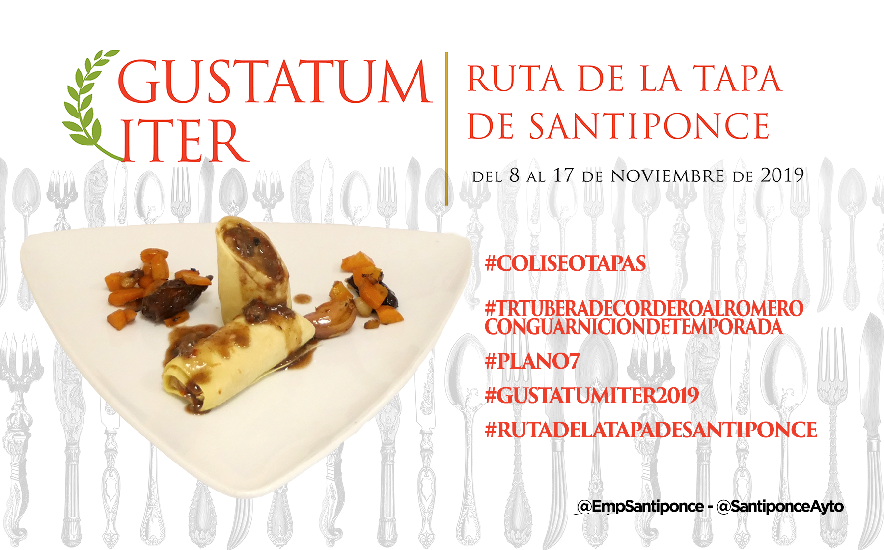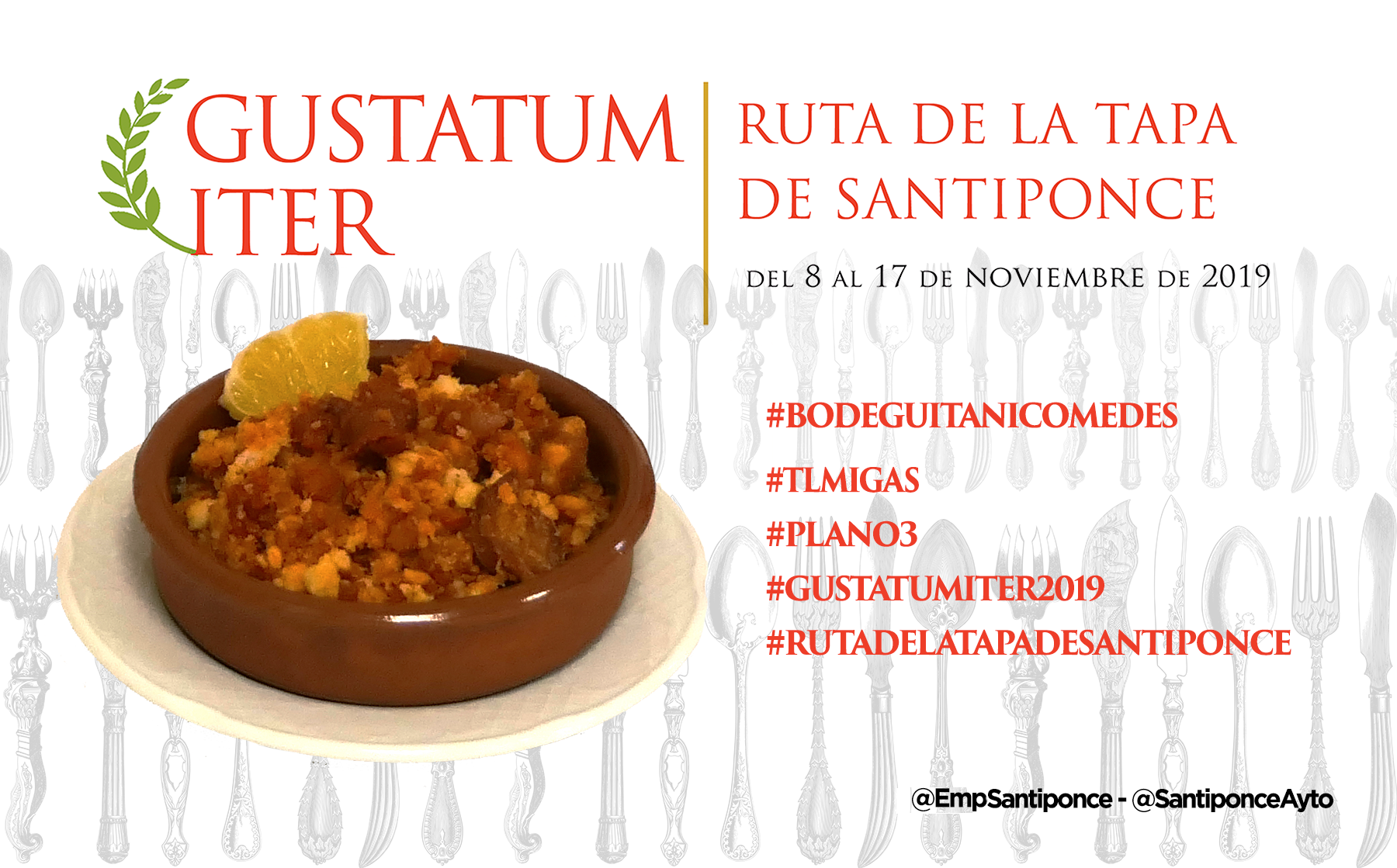 Ya puedes empezar a probar y compartir la foto de tu tapa preferida, puedes usar esta o la que tu hagas, usa los #Hashtags que te indicamos y no olvides mecionarnos a @SantiponceAyto y @EmpSantiponce.