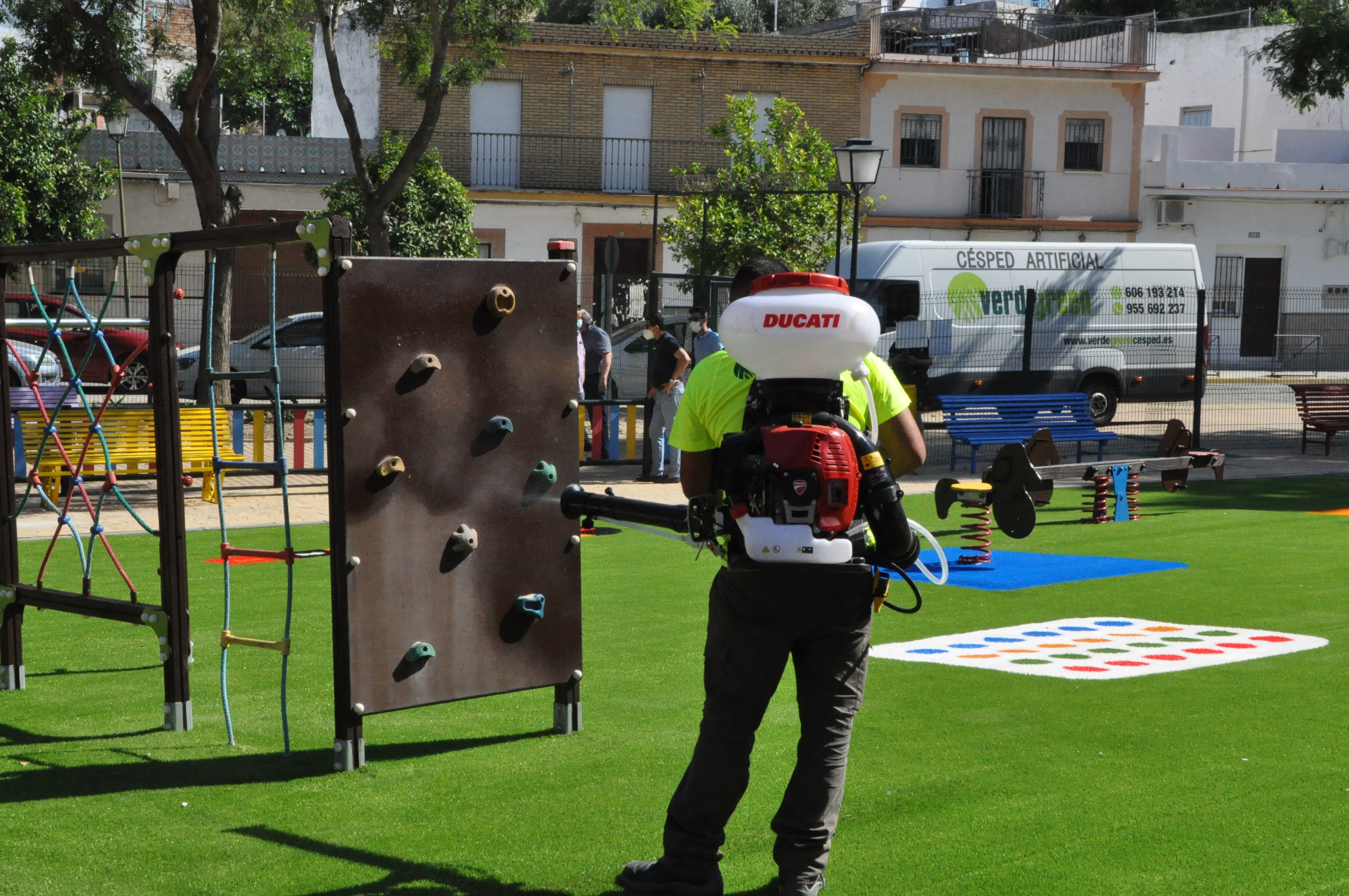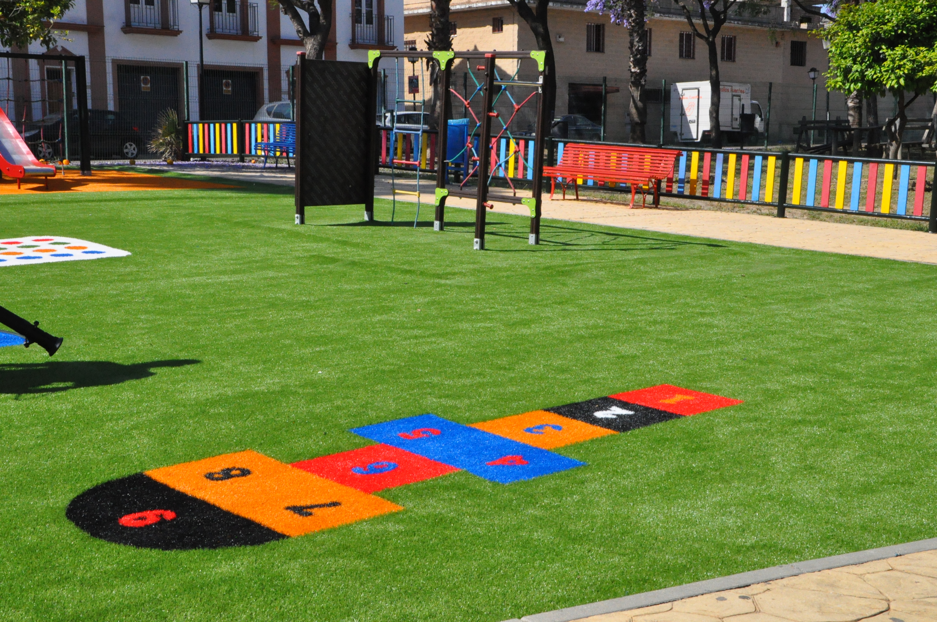 En el suelo de toda la zona se ha instalado césped artificial de “VerdeGreen” en diferentes colores y se han sustituido los elementos rotos de los diferentes juegos infantiles.
