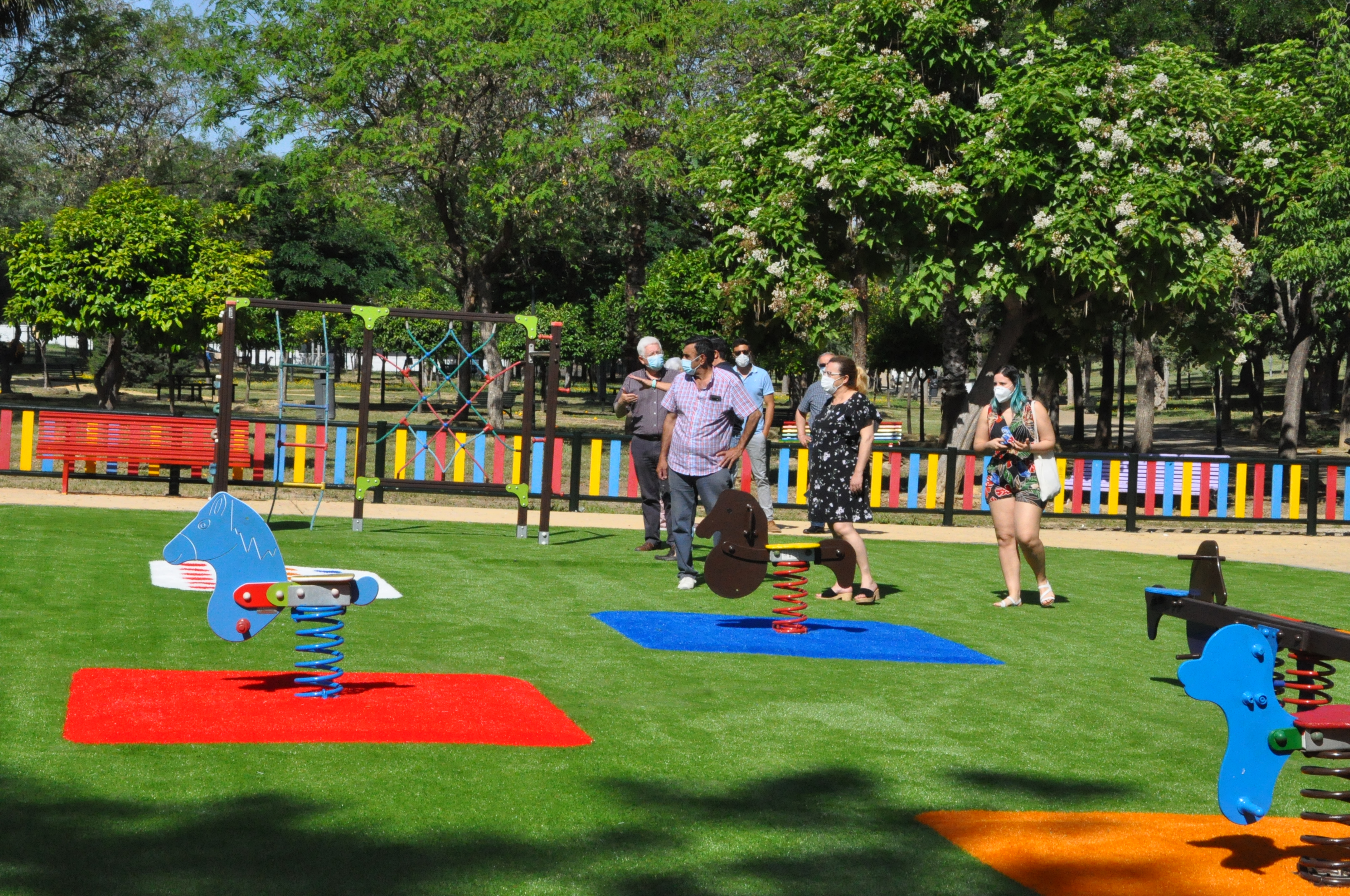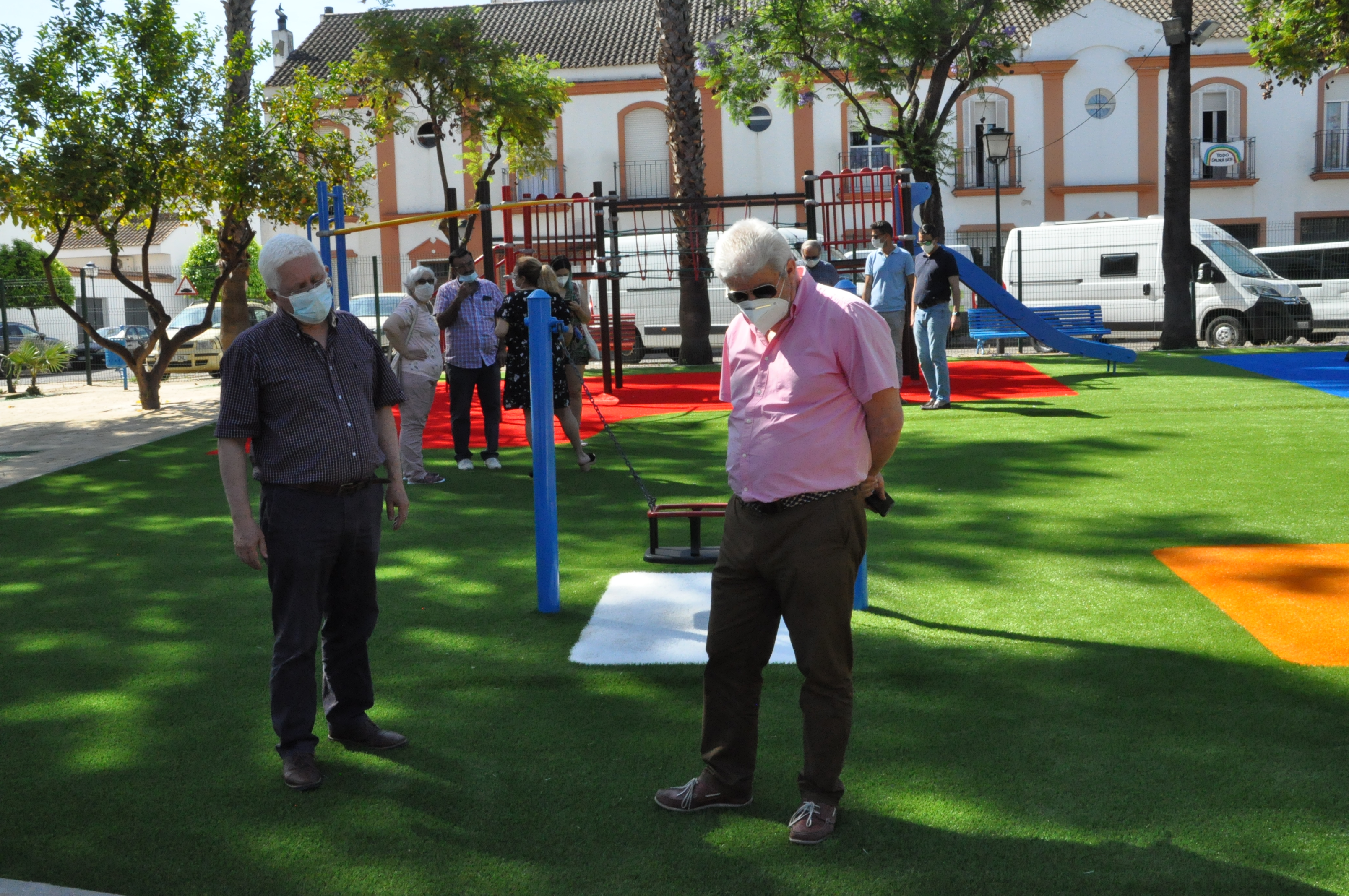 El equipo de gobierno ha visitado hoy las recientemente finalizadas obras de la zona infantil del parque de La Almendra, unas obras que han sustituido el anterior acolchado muy deteriorado por un nuevo acolchado, con más amortiguación en la zona que ocupan cada uno de los juegos.